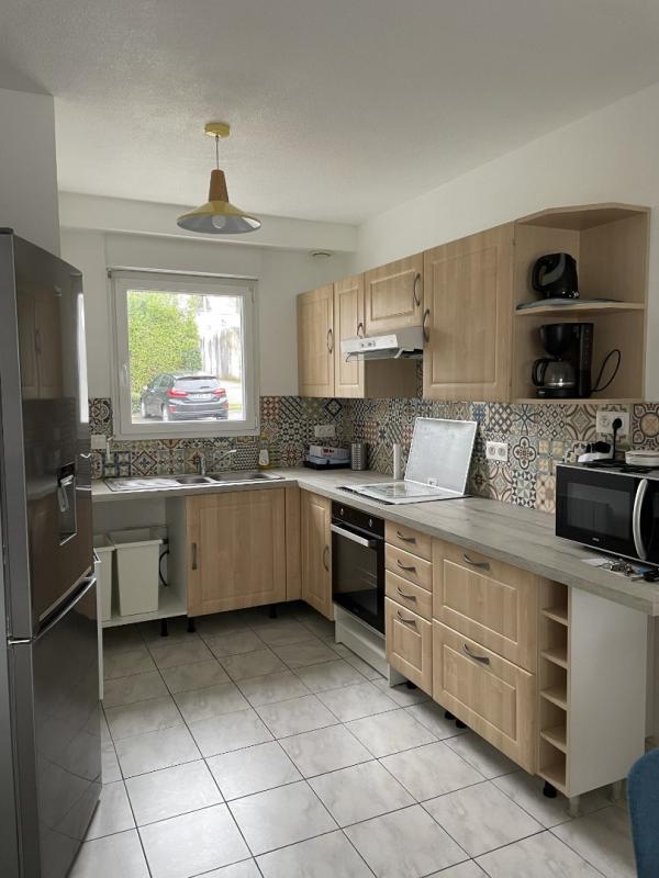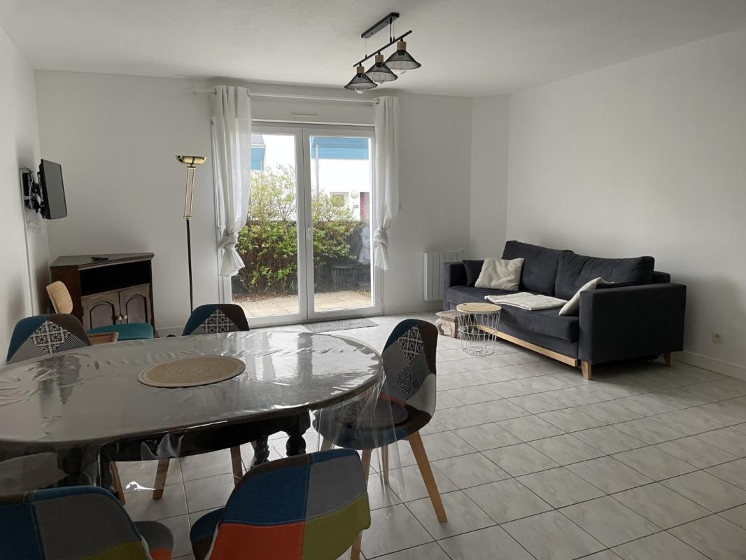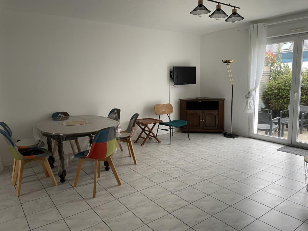 A proximité de la gare, commerces et écoles, maison Type 3 meublée de 68 m2 en copropriété comprenant au rez de chaussée: une entrée desservant une cuisine aménagée et semi équipée ouverte un séjour avec terrasse, , un WC.