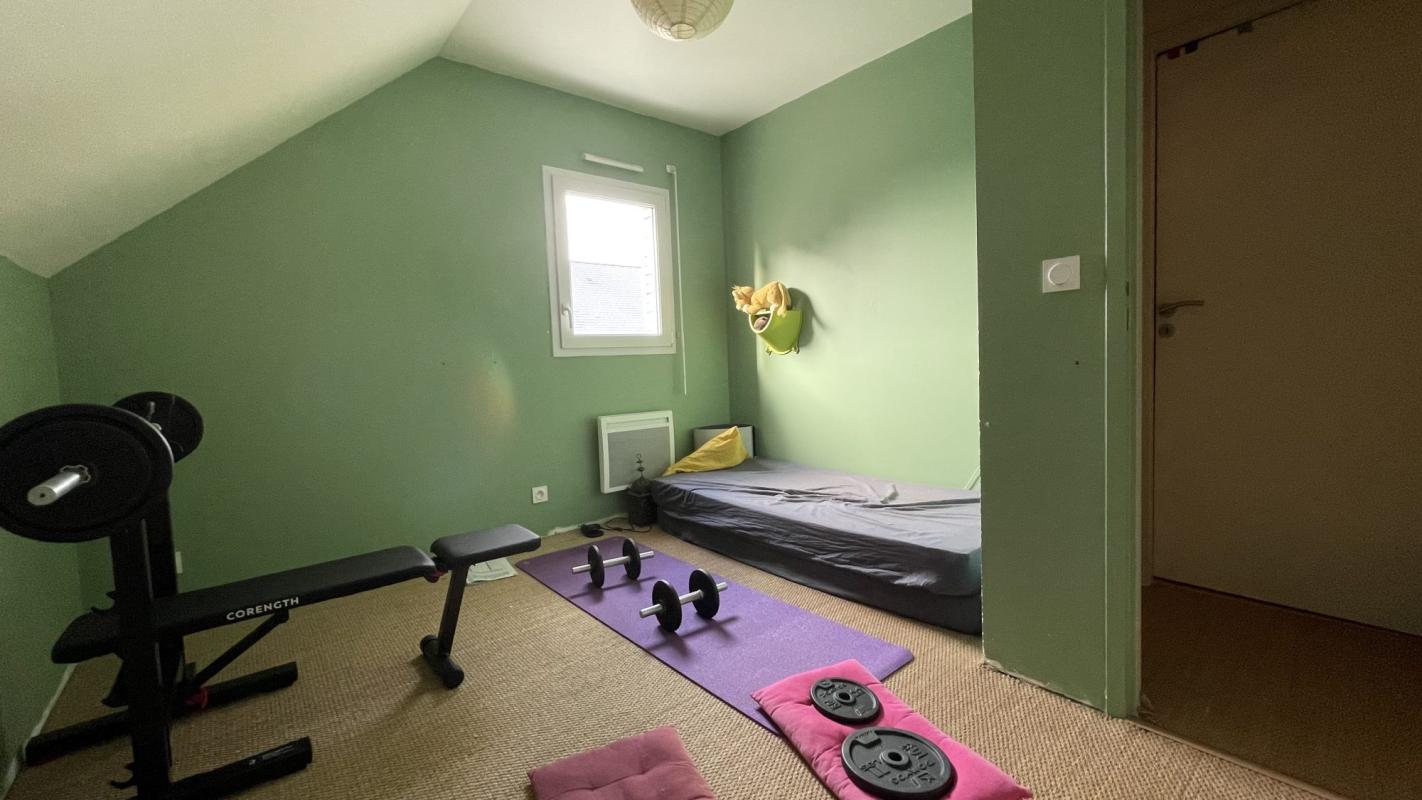 A l’étage : mezzanine, 2 chambres, salle d’eau et possibilité d’un second w-c.