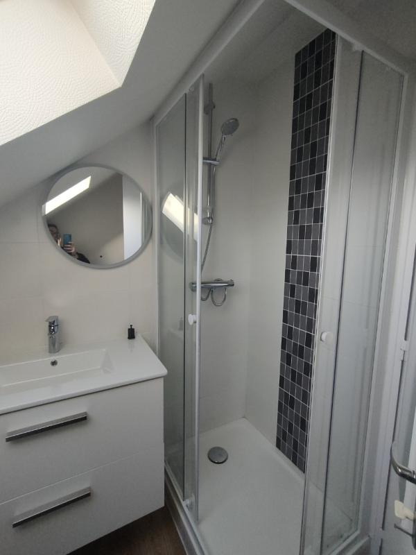 Studio au 4ème et dernier étage refait à neuf de 9.89m² (16,55m² au sol) composé d’une entrée, séjour avec placard, kitchenette équipée, salle d’eau avec wc.