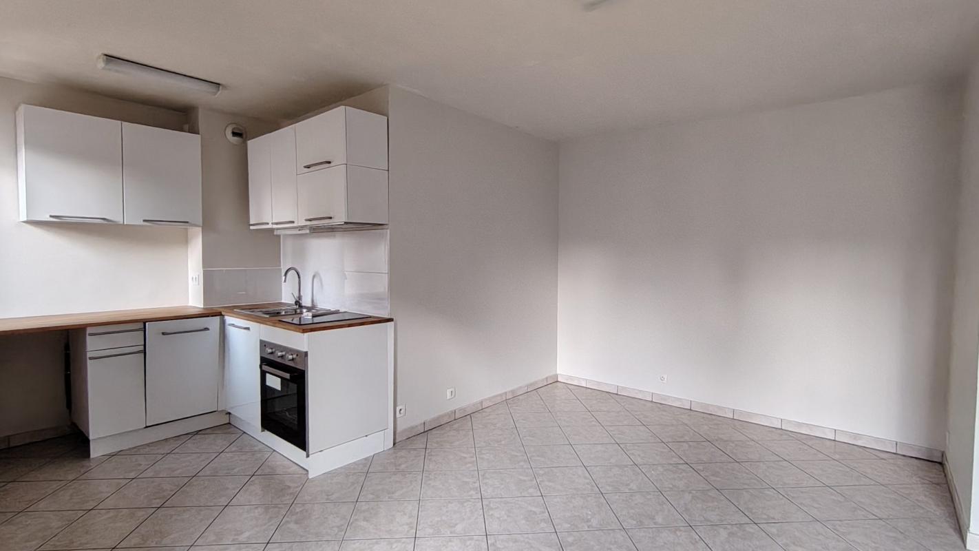 Entrée avec placard, cuisine aménagée et équipée ouverte sur le séjour, chambre avec placard, couchage d’appoint, salle d’eau et w-c séparé avec lave-mains.