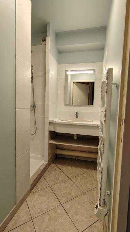 Entrée avec placard, cuisine aménagée et équipée ouverte sur le séjour, chambre avec placard, couchage d’appoint, salle d’eau et w-c séparé avec lave-mains.