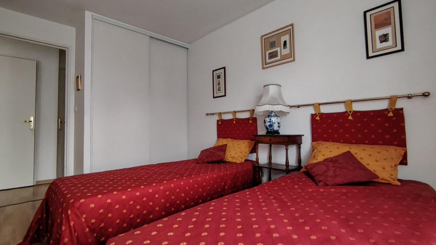 Il se compose d’une grande entrée, cuisine aménagée et équipée, séjour très lumineux avec balcon au Sud, dégagement avec placard, 2 belles chambres avec placard dont une avec balcon au Sud, une salle de bains et un w-c séparé avec lave-mains.