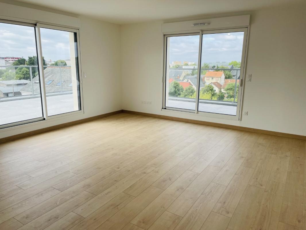 21 bd Jean Mermoz – St jacques de la lande – Appartement T4 N° 501de 96.06 m² situé au 5è étage/ascenseur et dernier étage, comprenant : une entrée/placard, une belle pièce de vie donnant sur une terrasse de 35.75 m² expo S/O, une cuisine ouverte aménagée et équipée (4 feux vitrocéramiques, réfrigérateur/congélateur, hotte, micro-ondes, four, lave-vaisselle), trois chambres/trois placards (DONT une suite parentale avec dressing et salle de douche privative), une salle de bain, wc – deux places de parking en sous-sol N° 9 et (3 avec système de monte-charge pour récupérer sa voiture).