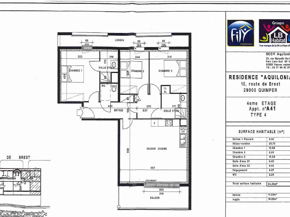 A louer, QUIMPER, Centre cadre paisible- à deux pas du centre ville et de la voie express, nous vous proposons cet appartement de type 4 de 84.45 M²dans un immeuble récent . Il est composé comme suit d’une entrée avec placard,cuisine ouverte sur séjour, meublée et équipée (hotte, plaques), séjour, trois chambres dont deux avec placard, deux salles d’eau , wc – Balcons – Pour votre véhicule , cet appartement est loué avec une place de parking – La sécurité du bâtiment est assurée par un interphone .Loi Pinel